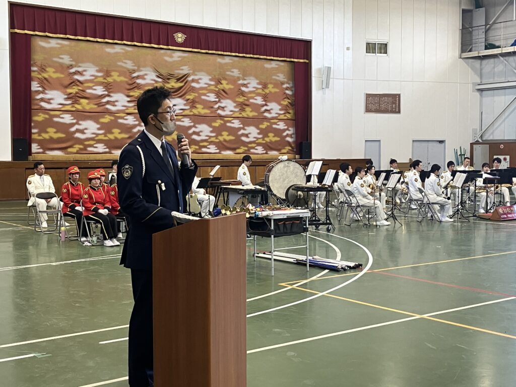 「交通事故防止」、「犯罪被害防止」についての講話、クラシック、ジャズ、ポップスなど、多彩なプログラム構成での圧巻の演奏、カラーガード隊「フレッシュ・アイリス」のパフォーマンスに魅了され、あっという間の1時間でした。