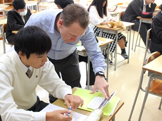 みなさんこんにちは、レポーターのこうちゃんとまいまいです。今回のレポートは、Matthew先生によるAll English授業と、普通科1年生対象の国際探究コース体験授業についてです。